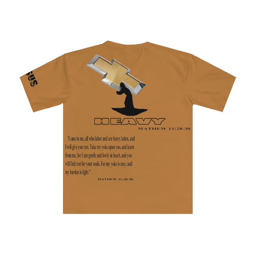 A shirt for the Christ lovers and Chevy lovers...Let's face it who doesn't think our burdens are Heavy, luckily for us IN HIM and THROUGH HIM we find comfort and rest. As said in Matthew 11 (scripture on shirt)